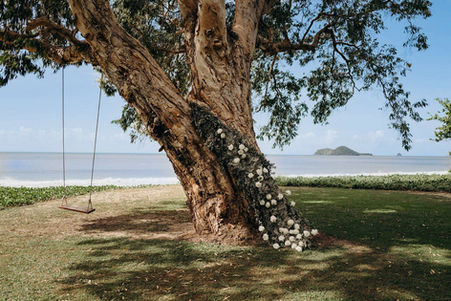 Exchange vows with the soothing sound of waves under the magestic Melaleuca tree. Transition seamlessly to a reception on the grass, where the panoramic ocean views and gentle sea breeze create an intimate atmosphere. Ellis Beach offers a picturesque canvas for your celebration, combining the beauty of nature with the simple elegance of your reception setup.